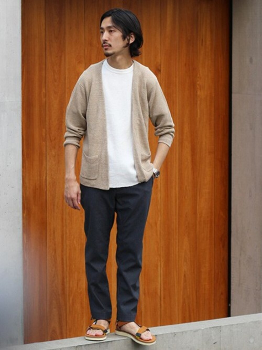 スウェード素材のものを選べば、サンダルでもカジュアル過ぎずおしゃれにキマります。